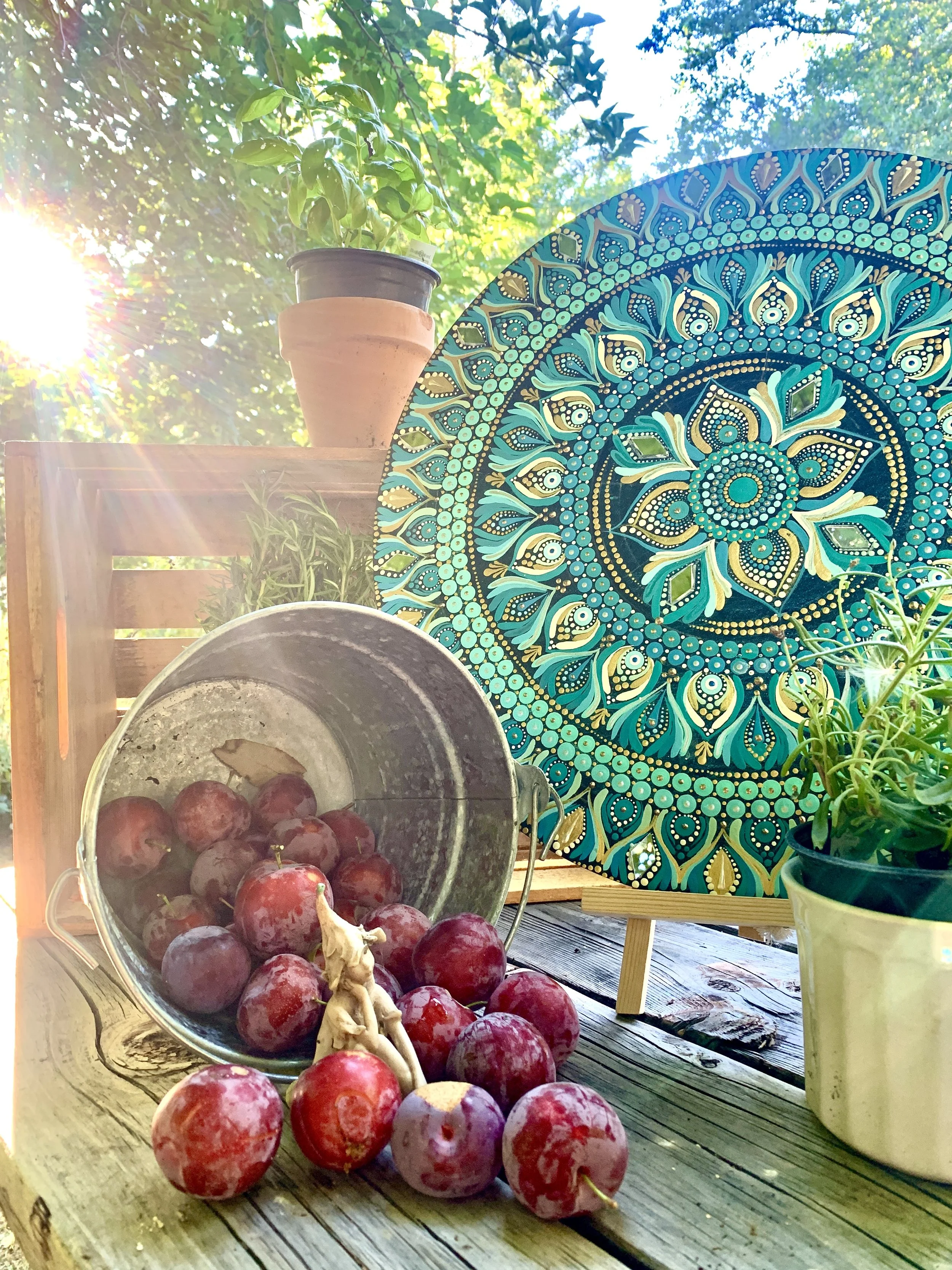 Each “Finding Center” mandala is handmade, hand-painted, and one-of-a-kind — created in sacred rhythm with the person it’s meant for.